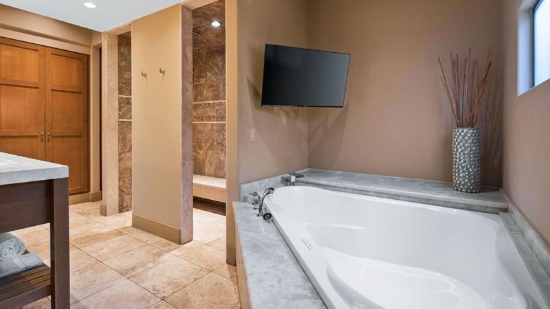 About 56% of hot tub hotels in Palm Springs have hot tubs in the bathroom, and most suites offer private hot tubs or spa tubs. About 44% include private hot tub suites, 25% have Jacuzzis, 19% have spa tubs, while the rest include jetted or whirlpool models. Heart-shaped tubs are rare, though Dynasty Suites Redlands offers in-room heart-shaped Jacuzzis.