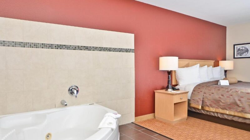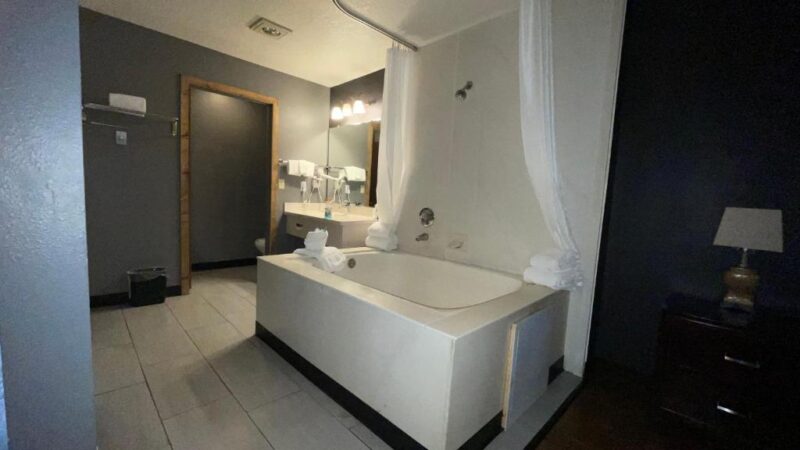The most affordable hotel with hot tub in room in Portland is Econo Lodge Portland Airport. You can go through our full list of budget-friendly hotels with whirlpool tubs in room in Portland.