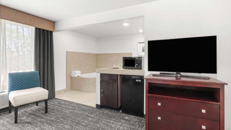 The best hotel with hot tub in room in Portland is Comfort Suites Portland Southwest. You can have a look at our full list of hotels with Jacuzzi suites in Portland.