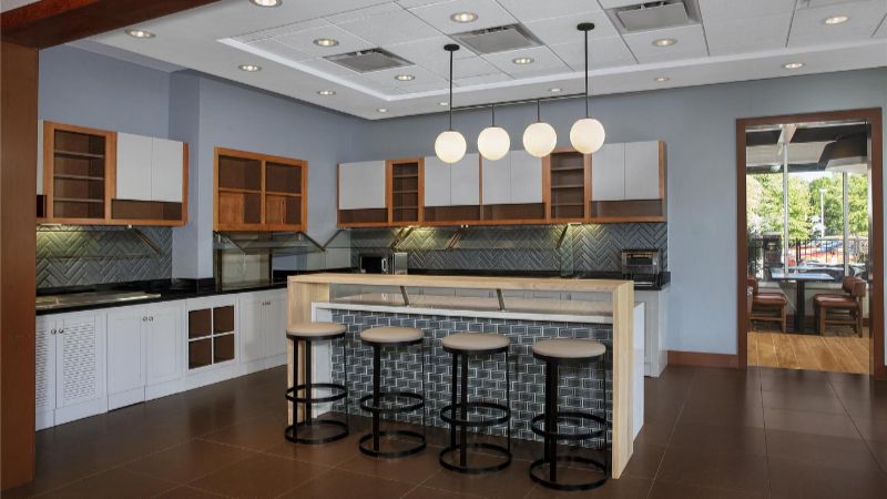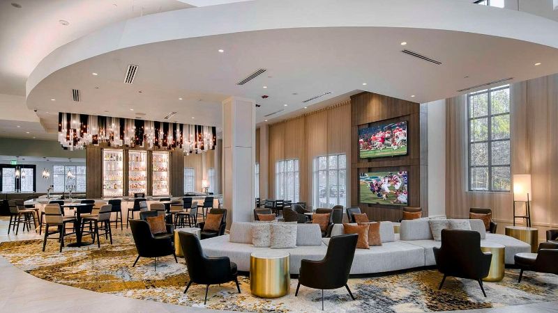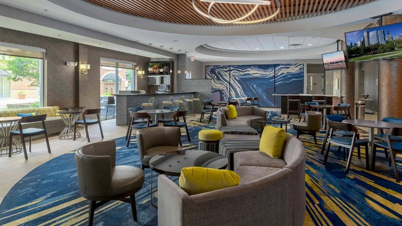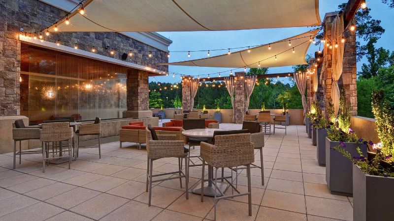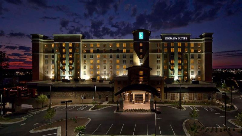 For Couples: Embassy Suites by Hilton Raleigh Durham Airport Brier Creek has romantic rooms with private hot tubs, modern amenities, and a complimentary evening reception.