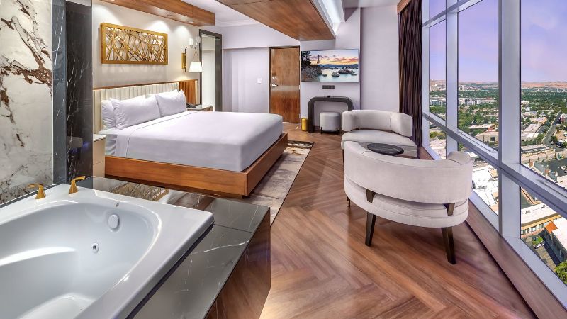 Nestled at the foothills of the Sierra Nevada, Reno is known as The Biggest Little City in the World, and has had an interesting history of being a big gambling town. Today, Reno has a growing cultural and economic hub, attracting visitors and residents alike. From business travelers to leisure travelers, Reno’s hotels with hot tubs can accommodate all kinds of visitors.
