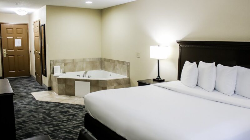 Besides the Jacuzzi in the room, these hotels often feature a range of other amenities. These may include free Wi-Fi, breakfast, a fitness center, a business center, an indoor or outdoor pool, an onsite restaurant, an airport shuttle service, and more. Certain rooms may also come with a fully-equipped kitchen, especially in extended-stay hotels.