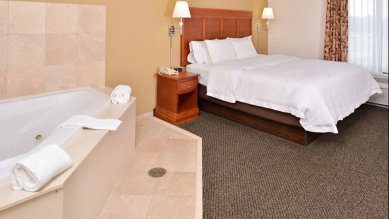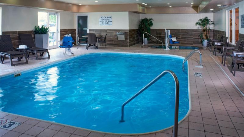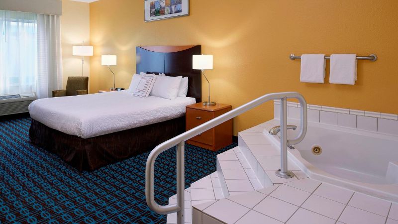 A welcoming hotel stay with hot tub in room, indoor pool, fitness center, and breakfast service in Richmond.