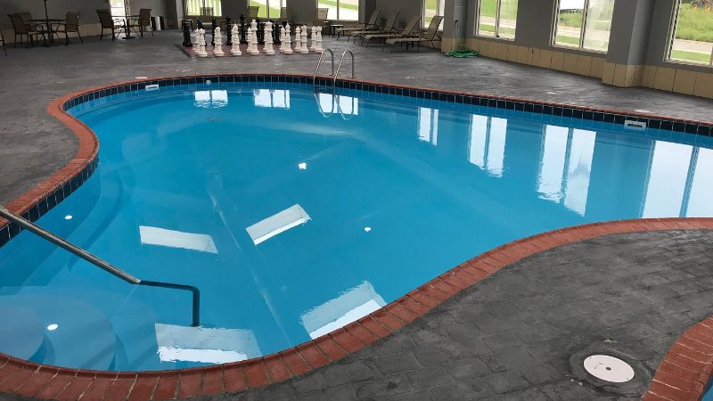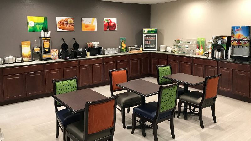 Pool not heated. Garbage bin outside was over-flowing until brought to their attention. Rooms were adequate compared to price paid, but could use some major updates and revamp. Exterior damage. Breakfast did not include eggs / sausage, nor apples or bananas. Waffles, yougurt, bagels, cereal, toast, coffee, juice as expected. Responsive service from staff. Reasonably priced, so it worked for me.