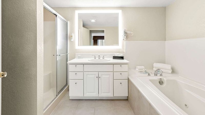 Finally, resort-style properties such as San Diego Mission Bay Resort offer larger bathrooms with tubs designed for longer stays near the beach.