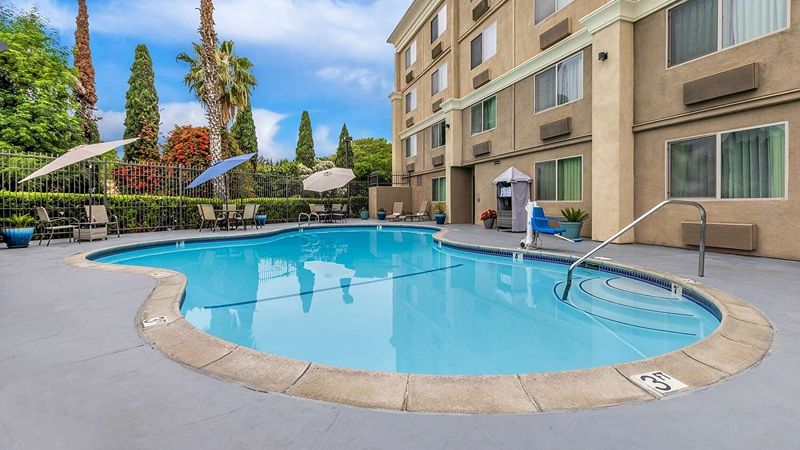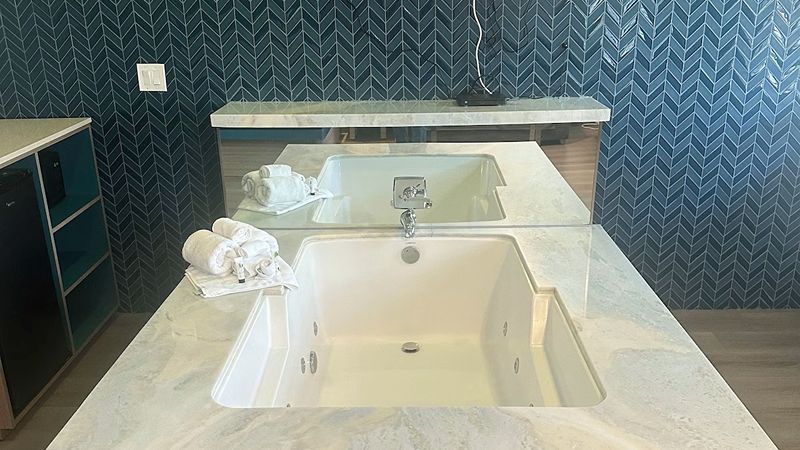 In the Mission Valley and Hotel Circle area, many mid-range hotels place the spa tub inside the bathroom. Properties such as Best Western Seven Seas and Holiday Inn Express & Suites San Diego – Mission Valley follow this design.