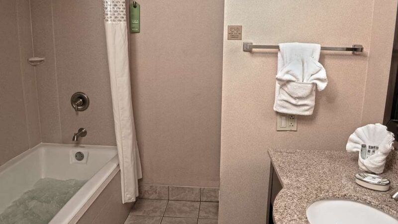 This is a pretty solid place. As other have mentioned, it’s a tad out dated in places, but certainly not prohibitively so. Rooms are comfy and the kitchenette is great. Water pressure is superb. Many hotel bathrooms don’t have a fan, but this one does.