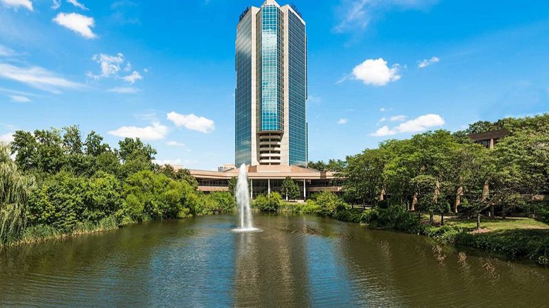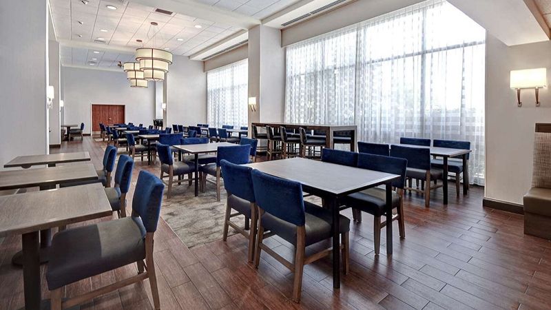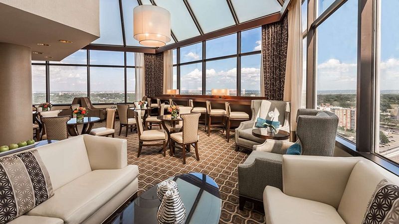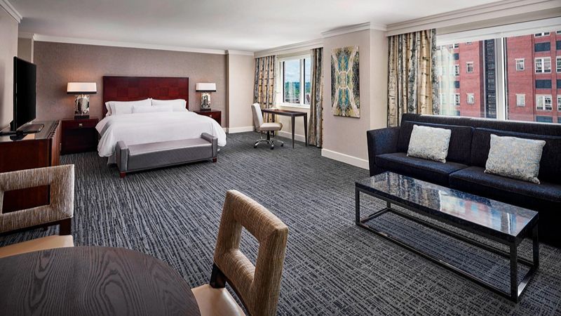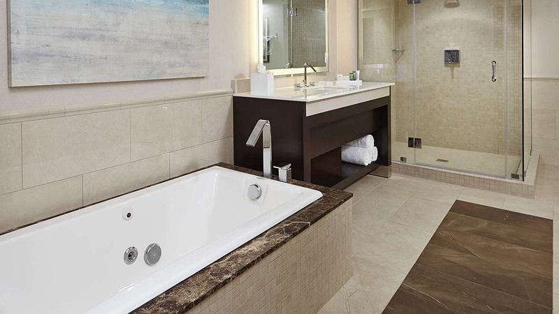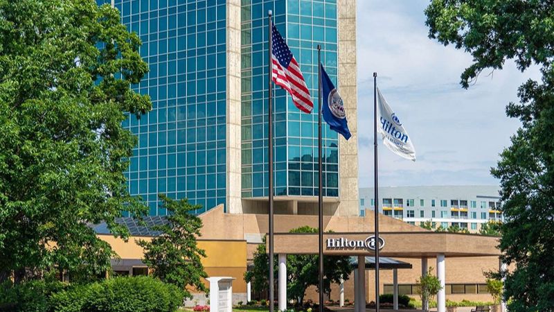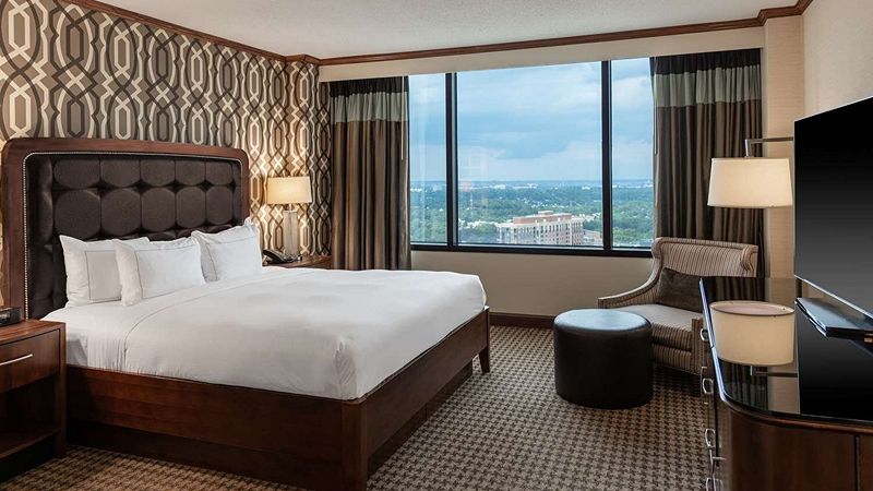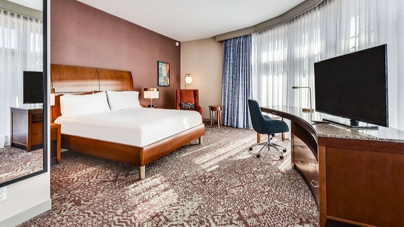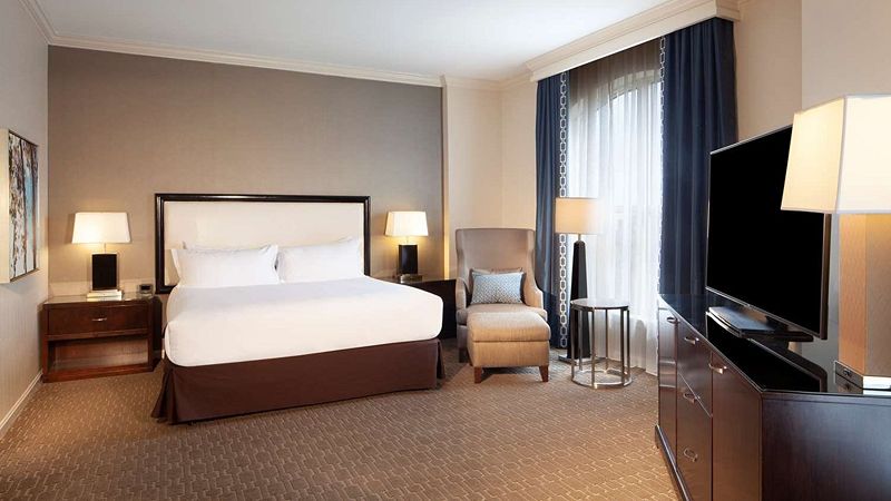 Top pick upscale Hilton hotel with private hot tub, award-winning restaurant, Starbucks, and 24-hour gym.
