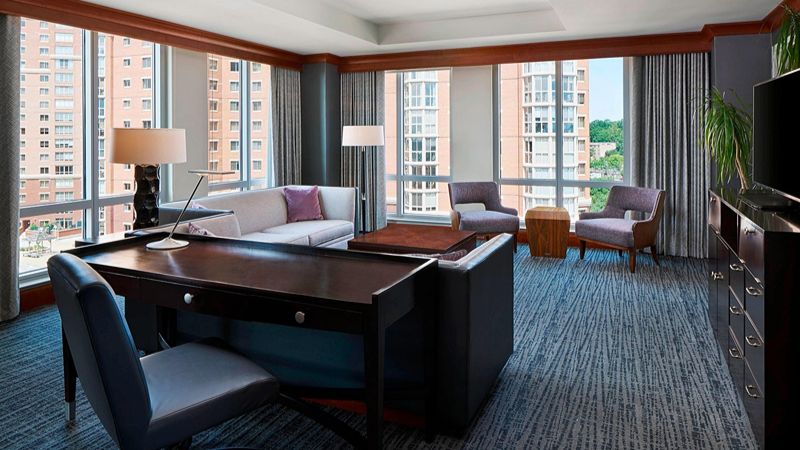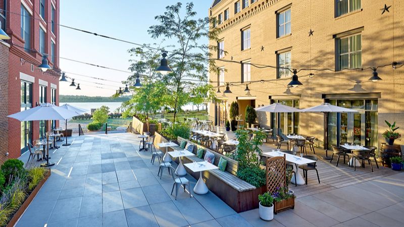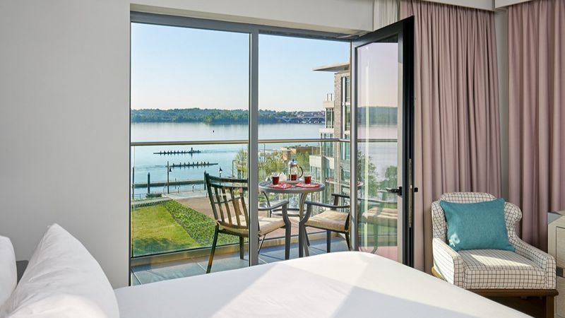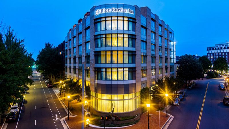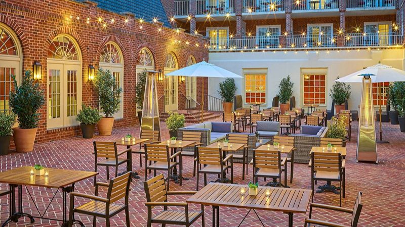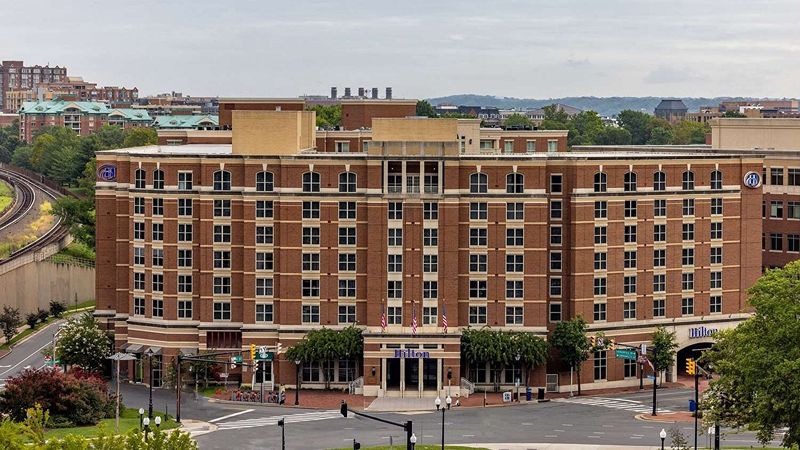Top Pick: Hilton Alexandria Old Town – Upscale historic district hotel with private hot tubs, tavern, gym, EV charging, and in-house Starbucks.