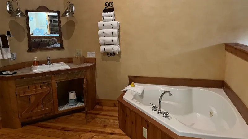 I found this cabin room to be everything my wife and I were looking for. The Jacuzzi was a warm welcome during the cold weather we experienced. The bed was comfy and even though everything was in one room and tightly packed, it was a welcome place to lay our heads after a long day in town.