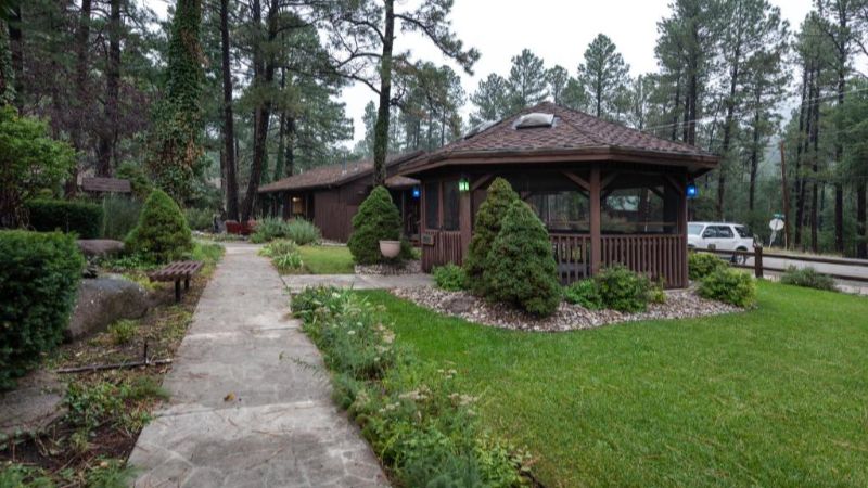 Charming inn with private Jacuzzis, fireplaces, and pet-friendly rooms and forest views near Ruidoso River.