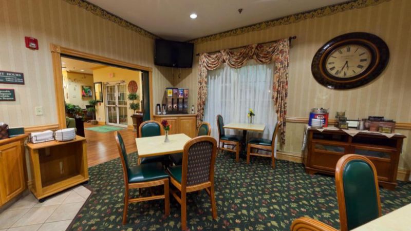 Service was great! Everyone was friendly and quite accommodating. We were there for a wedding, so no time to swim on Sat night, but they opened the pool an hour and a half early so our kids could swim before we had to check out Sun morning. And breakfast was extensive- bacon, sausage, eggs, chorizo, biscuits and gravy, regular waffles and red velvet waffles, oatmeal with all the toppings, and all the other typical continental breakfast items. Rooms were fine, a little dated and worn, but clean and comfortable, but it was the staff that really earned their five stars!