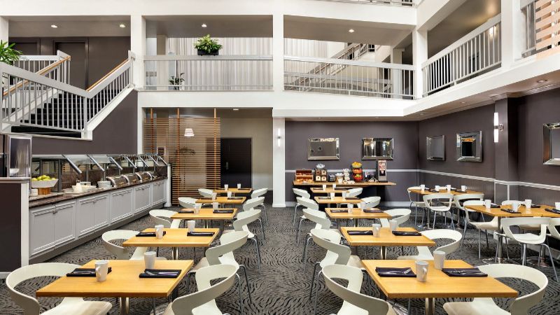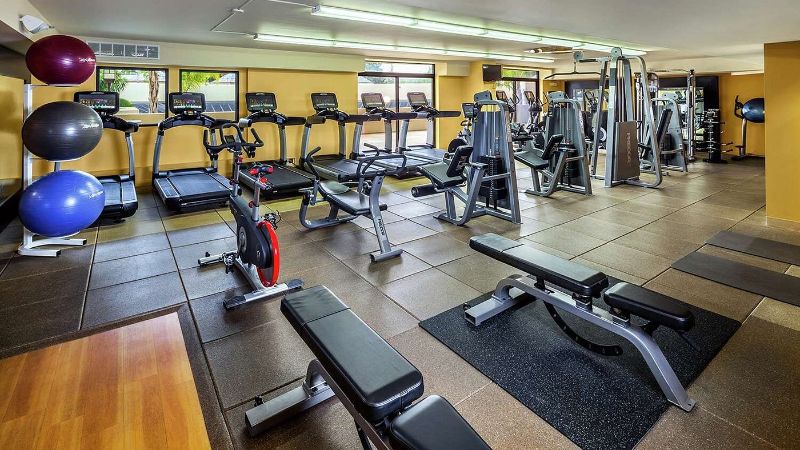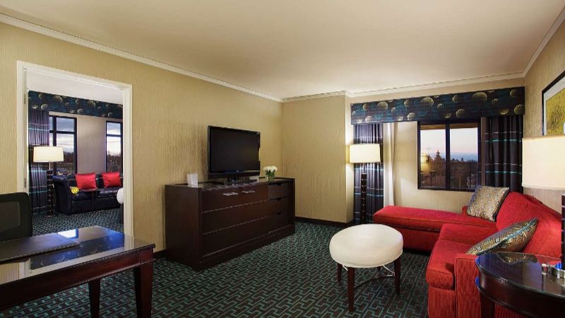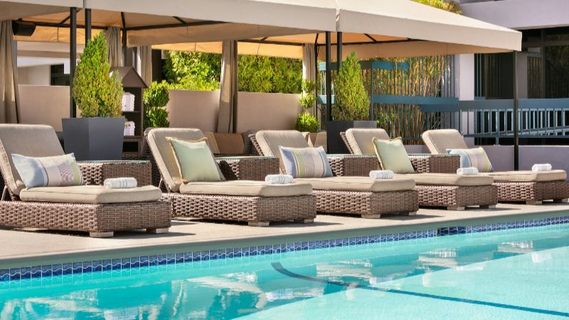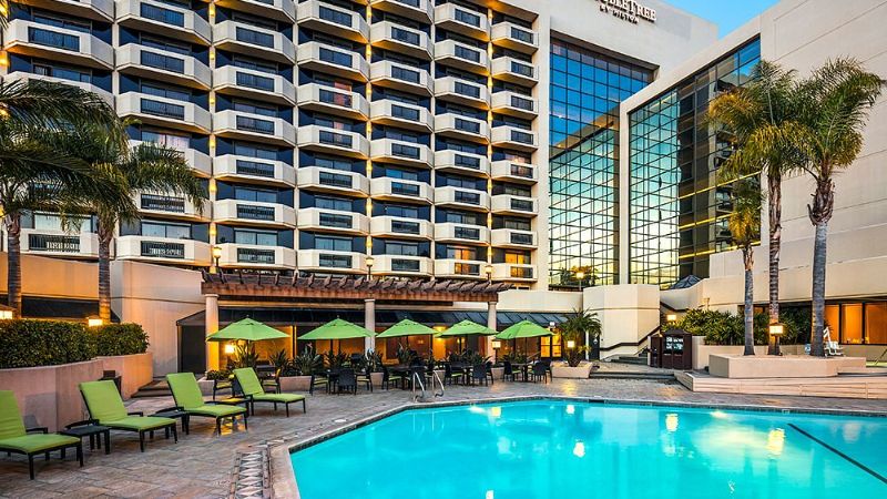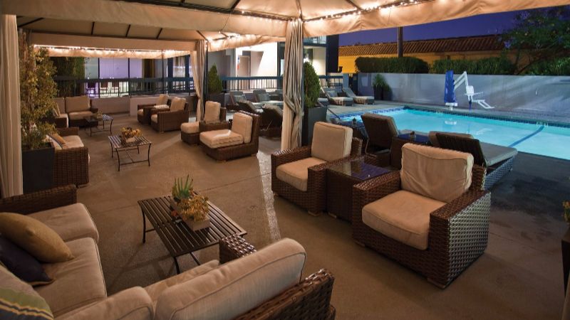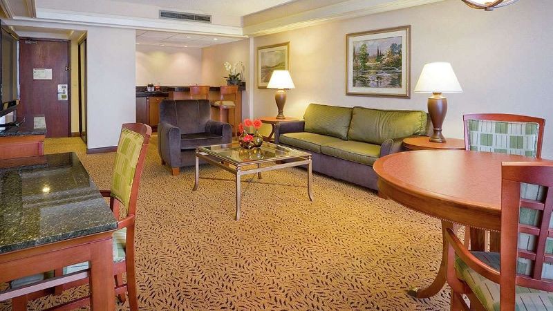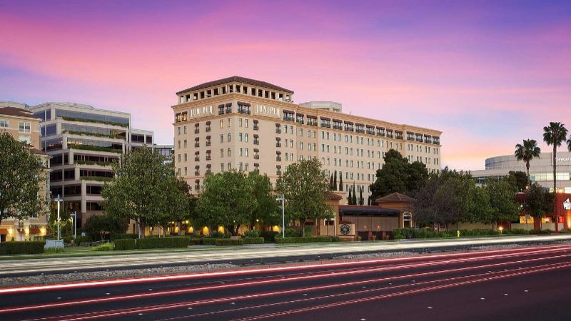Spacious Hilton hotel with private hot tubs, heated outdoor pool and fitness center, close to San Jose Airport.