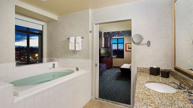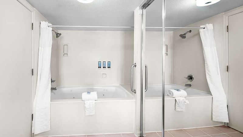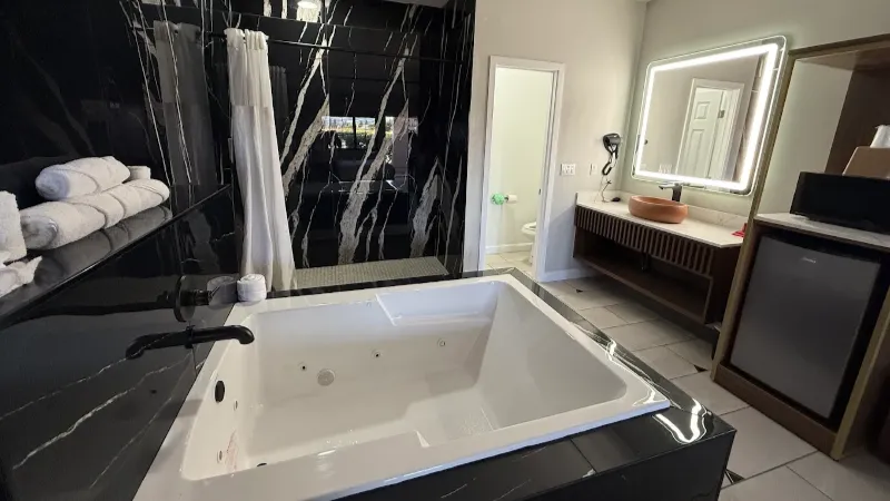 Hotels with Jacuzzi in room often offer additional amenities such as complimentary Wi-Fi, fitness centers, on-site dining options, room service, and parking facilities. Some may also include features like outdoor pools, spa services, and 24-hour front desk assistance.