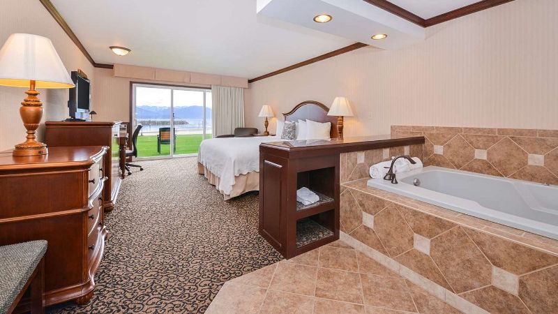 Hotels with a jacuzzi in room in Sandpoint, ID commonly include comfortable bedding, free Wi-Fi, flat-screen TVs, mini-fridges, and on-site parking. Many properties also feature lake or mountain views, balconies, fireplaces, and easy access to downtown shops, restaurants, and outdoor recreation areas.