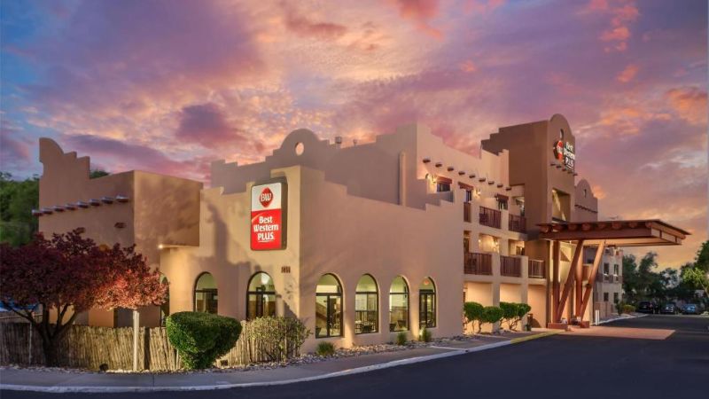 Historic hotel with with private whirlpools, pool, spa and gym, blocks from the Georgia O’Keeffe Museum .