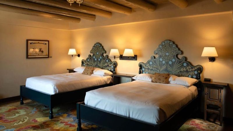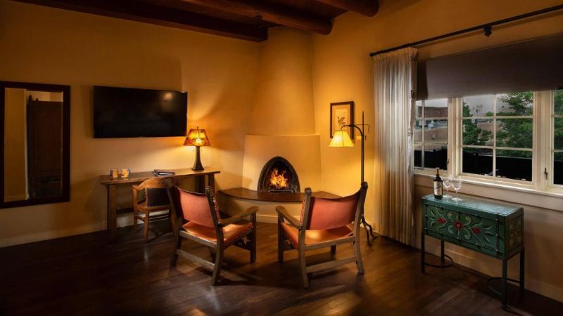 Best location in the plaza. Historic hotel. Ruch colores and southwest design. Good service, the calets were very helpful. Restaurants are extremely expensive. The French cafe leading the way in over priced food, pasties and egg, bacon and cheese sandwich. Family of 5 getting a sandwich or crepe with coffee, and waters set me back $148 with 20% tip. Cost will keep me away. Probably a govt mandated salary issue and taxes in NM.