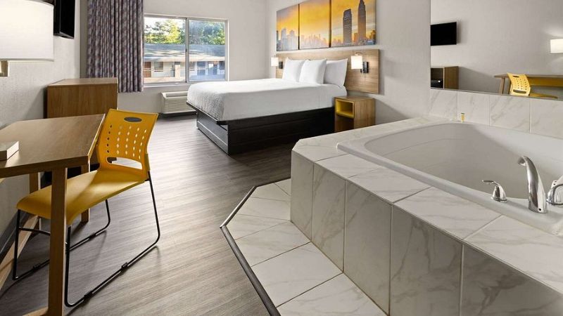 We’ve picked out top hotels with Jacuzzi and hot tub in room in Schenectady for you. This includes details about rooms, hotel rankings, location, and a brief overview. Once you’ve selected a hotel, click ‘See available rooms’ to visit our partner’s site. Input your preferred dates to check availability. The website will then compare prices from various platforms to ensure you’re getting the best value. After redirection, fill out the additional details about your stay. Some hotels offer pay-at-the-hotel options, while others need payment upfront, typically with a free cancellation policy.