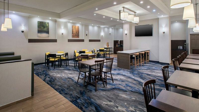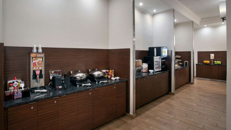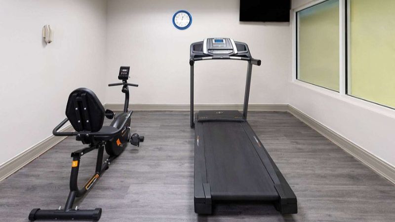 The gym is basic with older equipment, and the floor matting is uneven, which makes certain exercises a little annoying. But for a short stay, it works. They also offer a complimentary breakfast with all the staples—waffles, bacon, sausage, cereal, pastries. The woman running the breakfast area is incredibly kind and attentive—she made a great impression each morning.