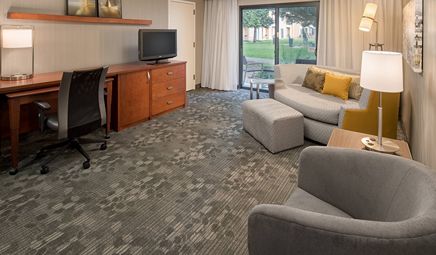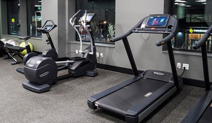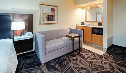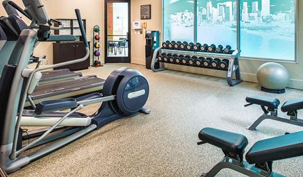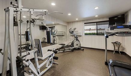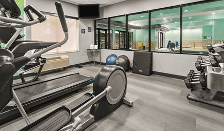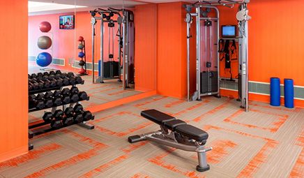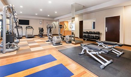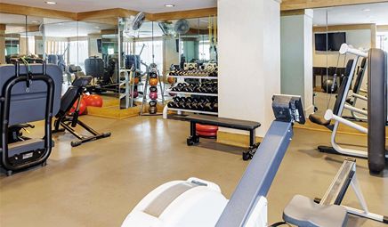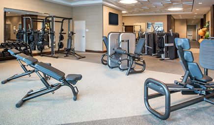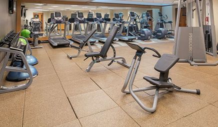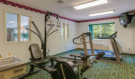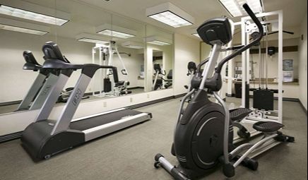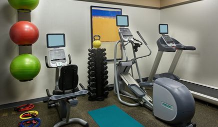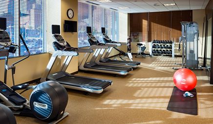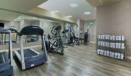 Are there any hotels with whirlpool tub in room in Seattle with a fitness center?