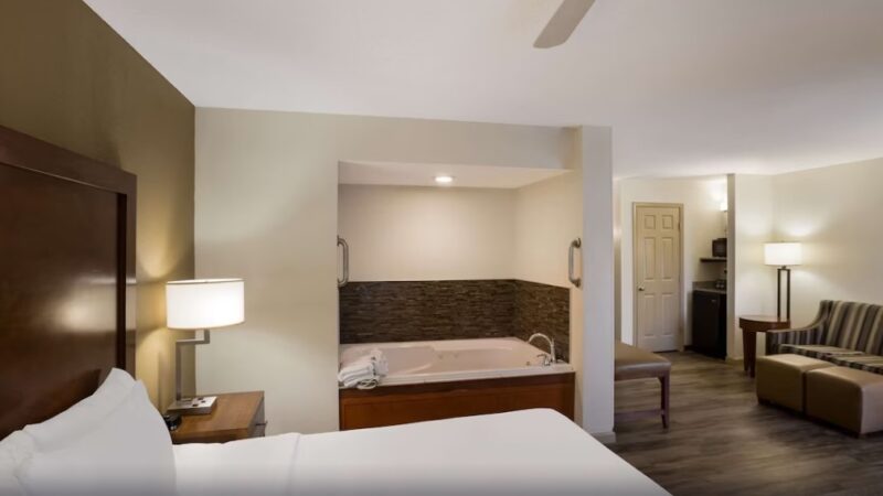 Hotels in Sevierville offering Jacuzzi or hot tub in-room typically provide a range of amenities to enhance your stay. Besides the Jacuzzi, you can expect luxurious features such as spacious suites with comfortable seating areas, plush bedding, and modern décor. Many rooms may also include amenities like flat-screen TVs with premium channels, free Wi-Fi, and mini-fridges for added convenience. Additionally, select properties offer balcony or patio access with scenic views of the Great Smoky Mountains, allowing you to unwind and enjoy the natural beauty. Some hotels might further pamper guests with complimentary breakfast, onsite dining options, fitness centers, and outdoor pools. It’s advisable to review each hotel’s specific offerings to ensure they meet your preferences and requirements for a relaxing and enjoyable stay.