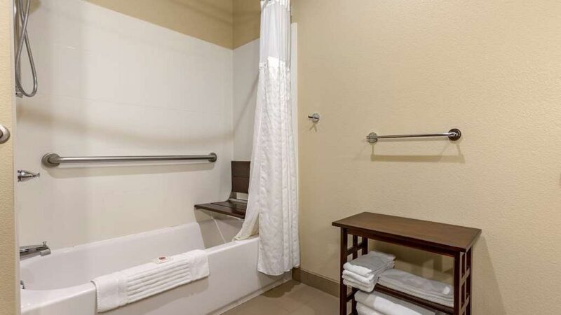 Friendly staff, clean rooms, rooms opposite the interstate were quiet, breakfast was good! The bar serves wine & beer. Pool area is nice size. Will definitely stay there again!