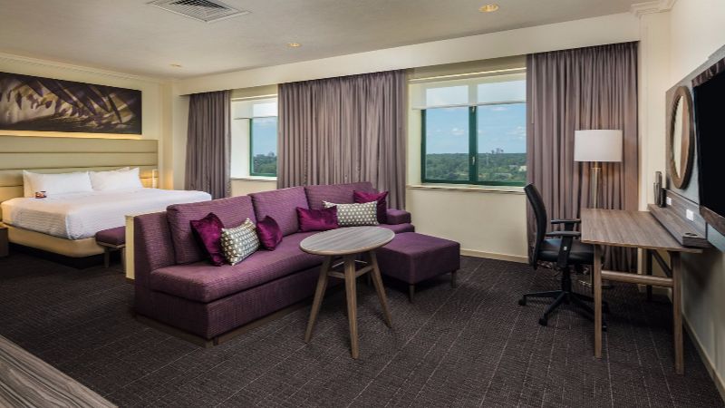 Our selection includes the top-rated hotels with Jacuzzi and hot tub in room in Springfield. You’ll find details about the rooms, hotel ratings, location, and a brief introduction. After choosing a hotel, click ‘See available rooms‘ to navigate to our partner’s site. Enter your travel dates to see room availability. The website will compare prices on different platforms to provide the best deal for you. After redirection, you will need to enter the rest of the details about your stay. Some hotels allow pay-on-arrival, while others require upfront payment with the option of free cancellation.