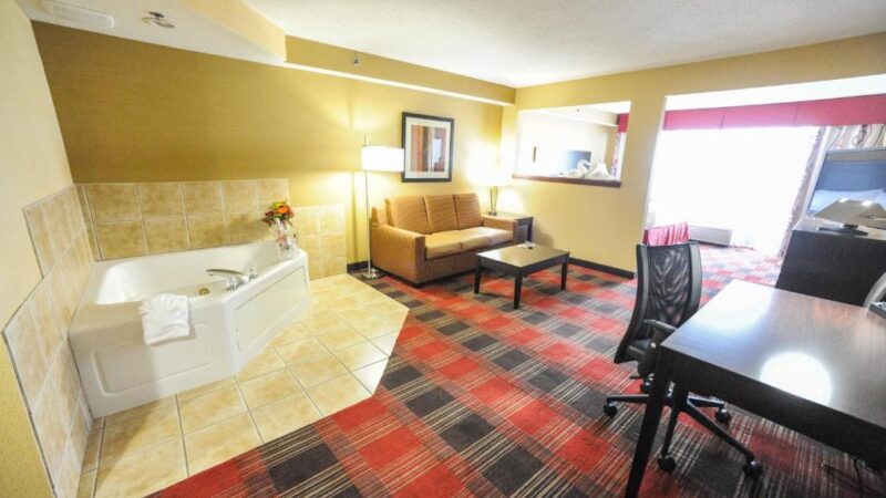 We made a selection of the best rated hotels with Jacuzzi and hot tub in room in Toledo, Ohio. You can see information about rooms with hot tub, hotel ratings, location and brief description. After you choose the hotel that you like, click the button ‘See available rooms’ and it will take you to our partners site where you should select your desired date so it can show availability of that hotel.