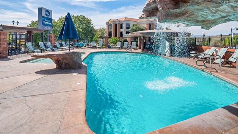 Cedar City hotel with private hot tub, fitness center, indoor pool, and free breakfast, near Southern Utah University.