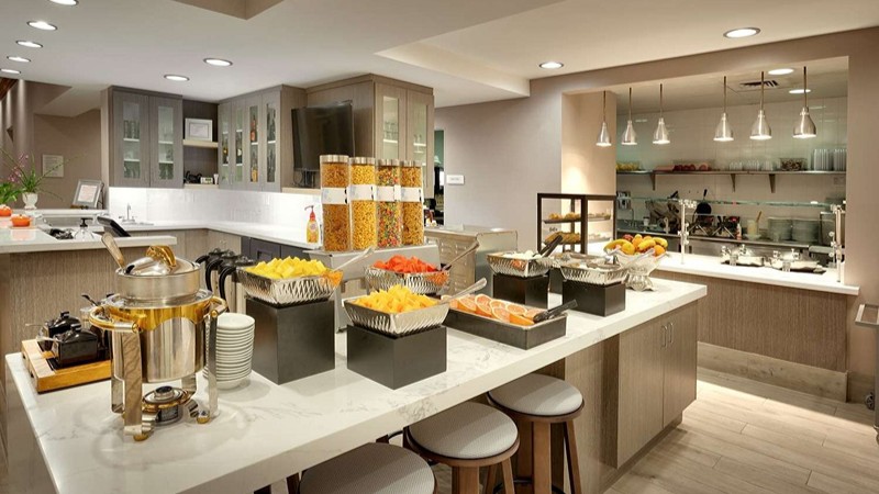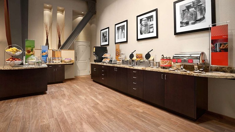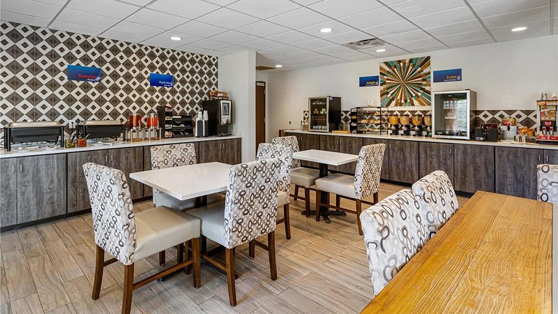We've stayed at a few hotels over the last 3 months and this hotel has been the best so far. The room was large and spacious. Very clean and comfortable. The breakfast was the best I've seen at a hotel in a while. Scrambled eggs, 2 types of potatoes, sausage links, biscuits and sausage gravy, 2 flavors of waffles, fresh fruit, oatmeal packets, yogurt bar with lots of toppings, 6 types of cereal, bagels, toast, muffins and the most unique option was a honeycomb to scrape from with a variety of crackers and cheeses. The staff was very friendly. The cost was very affordable!