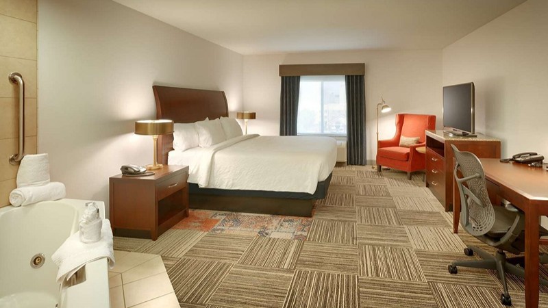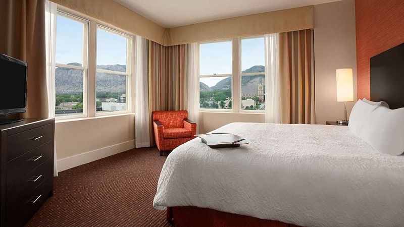 Modern Sandy hotel by Hilton with romantic Jacuzzi in room, restaurant and on-site pool, 15 miles from downtown Salt Lake City.