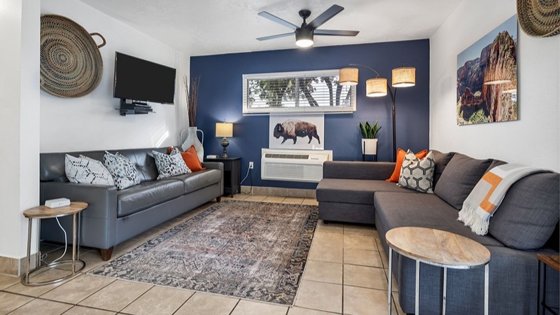 Scenic lodge with private Jacuzzis, pet-friendly options and free breakfast located near Zion and Bryce National Parks.