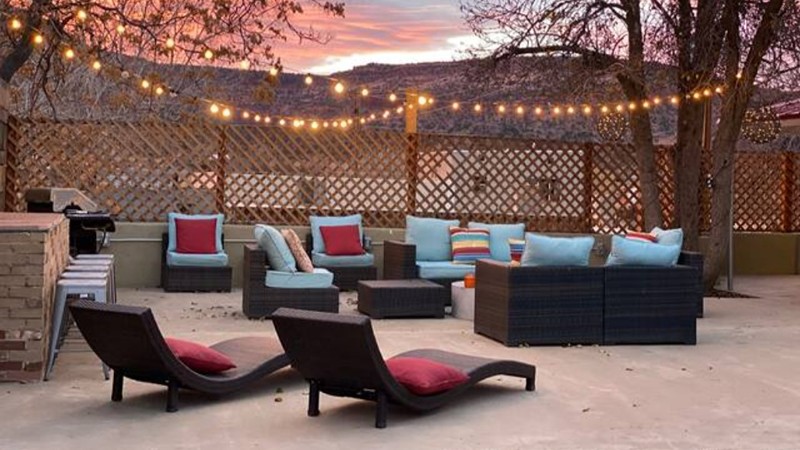 Adults-only hotel with private spa tub, garden lounge and free breakfast in the Moab South Valley district.