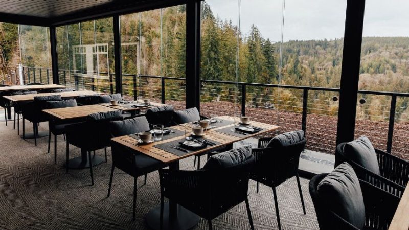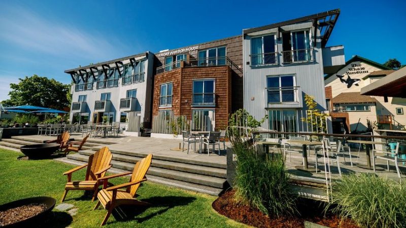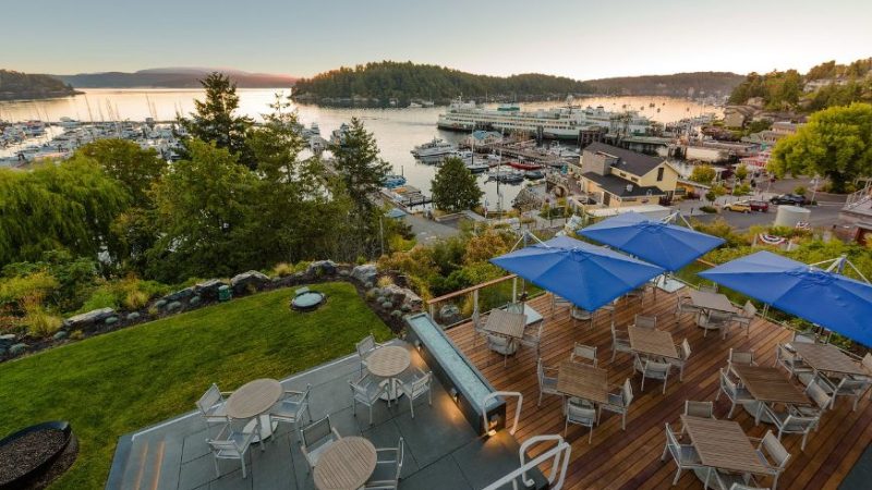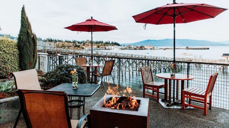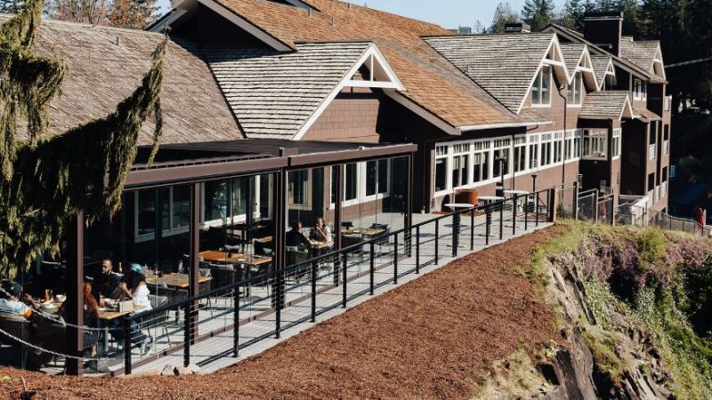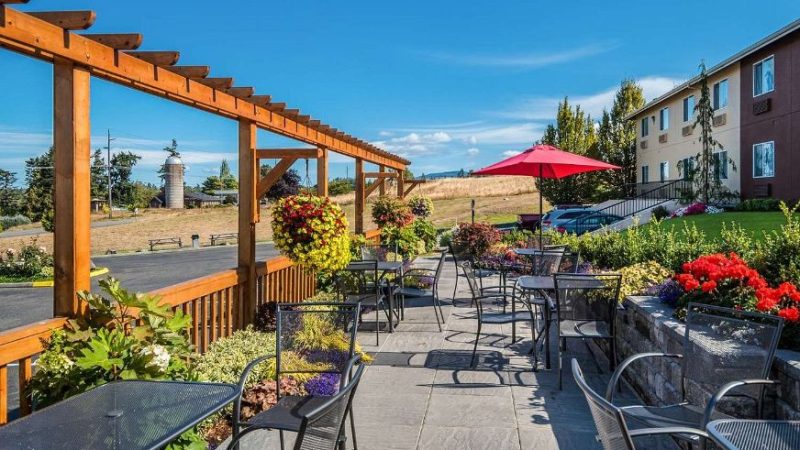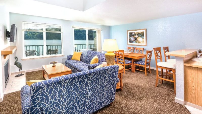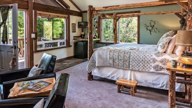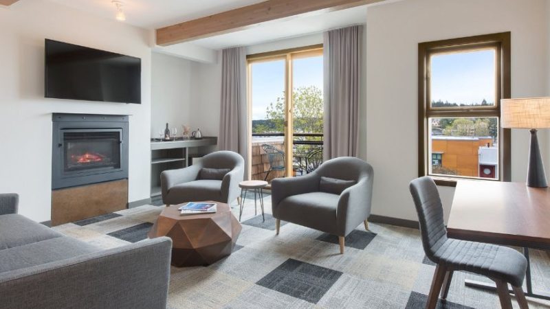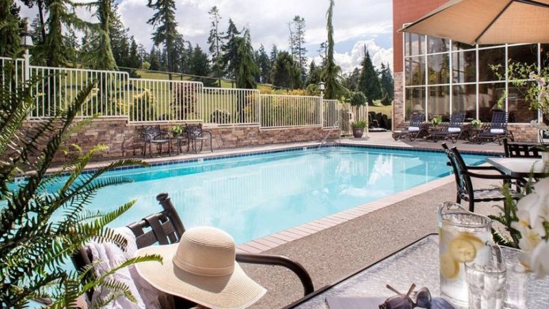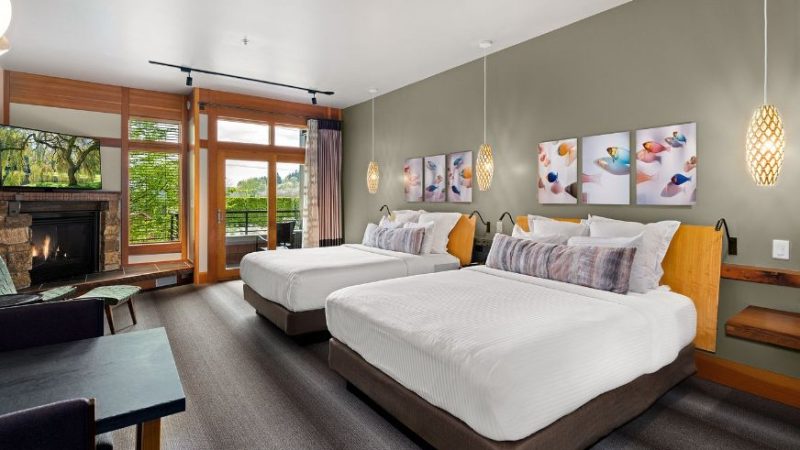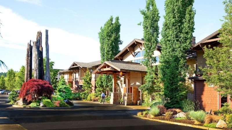 Luxurious hotel with private hot tubs, pool, restaurant, spa and massage service, along the serene Columbia River.