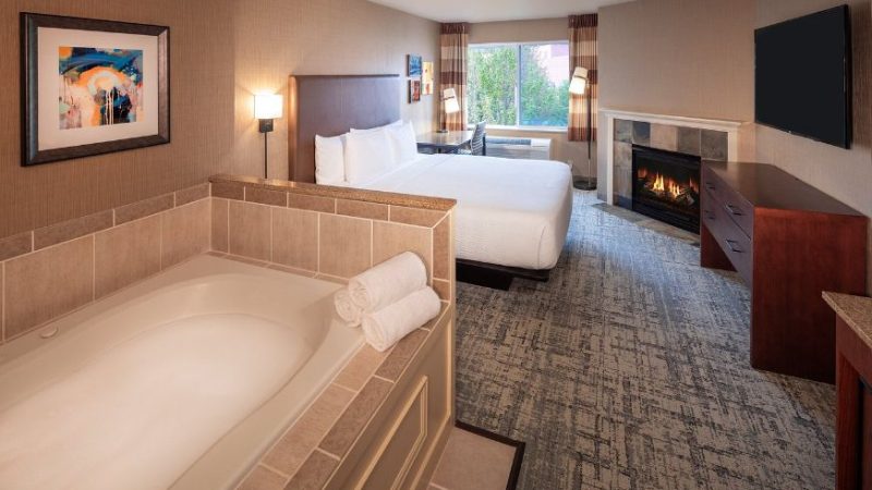 Experience the diverse landscapes of Washington State, from coastal regions to mountain ranges, while indulging in a hotel room with a Jacuzzi, typically priced between $215 and $420 per night. The price of a hotel with a Jacuzzi in Room in Washington State can fluctuate due to periods like summer vacations or weekends aligned with wine tours in the Yakima Valley.
