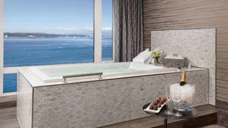 We made a selection of the best rated hotels with Jacuzzi and hot tub in room in Washington State. You can see information about rooms with hot tub, hotel ratings, location and brief description. After you choose the hotel that you like, click the button ‘See available rooms‘ and it will take you to our partners site where you should select your desired date so it can show availability of that hotel and price for desired date.