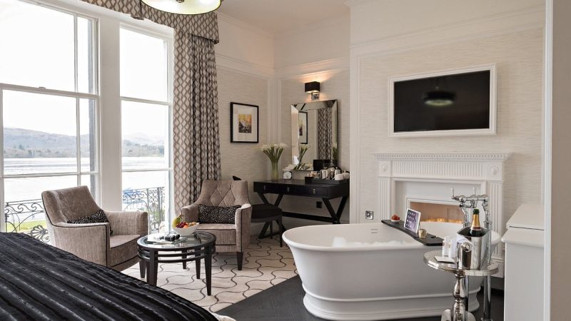 A romantic lakeside retreat with private Jacuzzi suite, fine dining, spa, and concierge in Windermere.