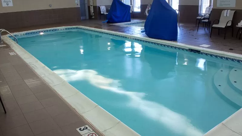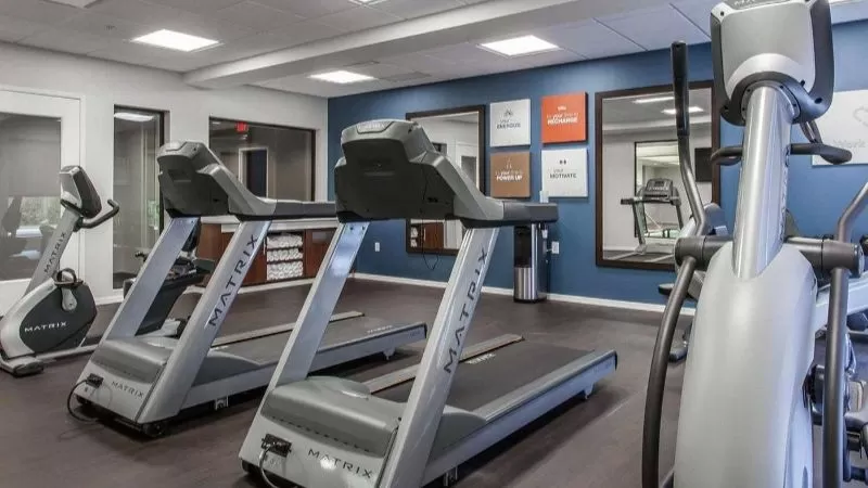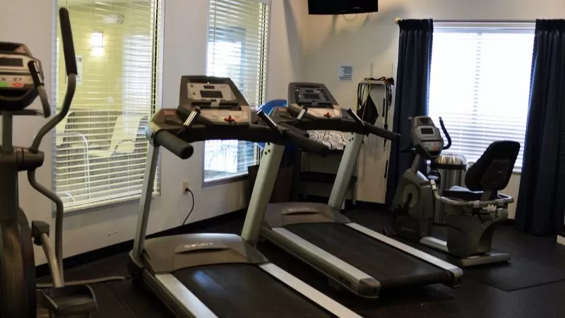 To top it off, I am not an expert, but my 10-years in facilities and the abhorrent smell in the gym makes me believe they should be in communication with a remediation company. Maybe they are, but based on the smell and damage seen in my room, doesn’t appear to be going very fast. Gym equipment has visible rust, no weights and the pool, while blue, was very cloudy.